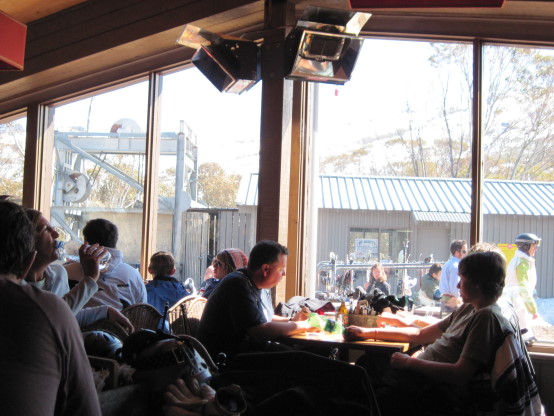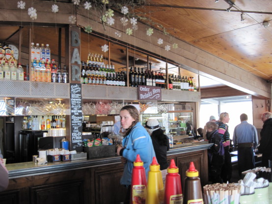因為餐廳在山上,每天早上都要搭20分鐘的纜車上山,好冷~~~~~~~~~~~~~~有時候製雪機早上會啟動,就在你旁邊噴雪~喔!!那時候真想死